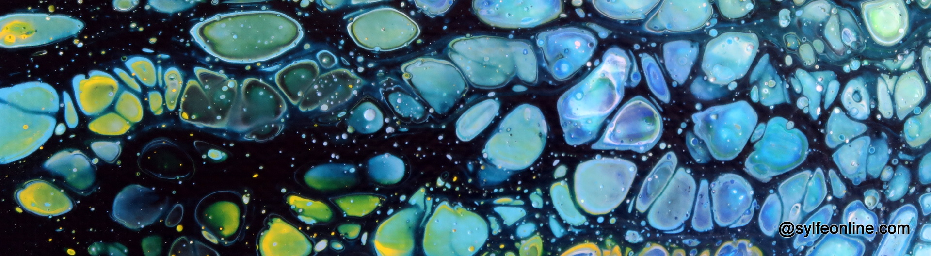 Une de mes premières créations (05/2018) sur une toile rectangulaire de 18cm x 24cm avec la méthode de la « raclette ». Je l’ai intitulée « Océan » car elle se mariait bien avec mon petit poisson bleu !