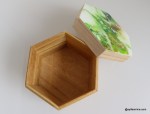 Passionnée de Fluidart, je fais des essais sur un peut tout (et n’importe quoi). Aimant travailler sur les surfaces en bois, j’ai acheté quelques boîtes pour en peindre le couvercle. Dans ce cas précis, la préparation de la boîte prend un peu de temps car il faut protéger, poncer, vernir, etc. Préparer le bois pour qu’il reste chouette aussi bien à l’extérieur qu’à l’intérieur! La peinture est ensuite recouverte de résine pour une belle finition.