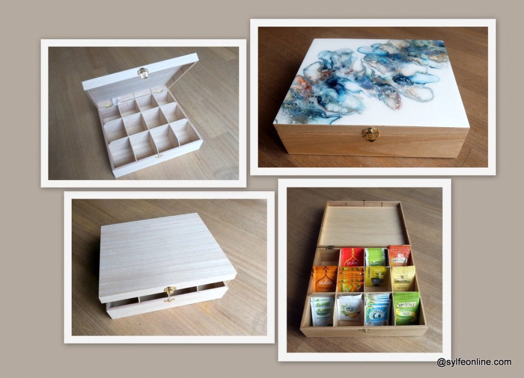 Pour répondre à quelques demandes, vous trouverez ici les photos des objets utilisés pour mon fluidart avant et après « transformation ». Il est vrai que voir le produit fini ne permet pas toujours de réaliser le travail fourni en amont. Pour certains objets, la phase de préparation et les finitions peuvent demander beaucoup de temps. C’est le cas des boîtes en bois, des marque-pages et des couvercles de bocaux en verre.